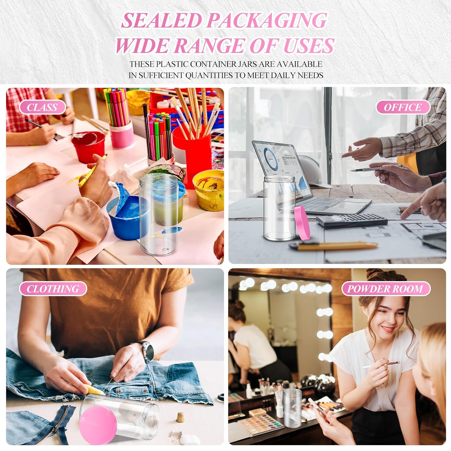 - What You Receive: there are 4 pieces plastic jars with pink screw-on lids; They are durable and refillable, measuring about 32 oz in capacity
