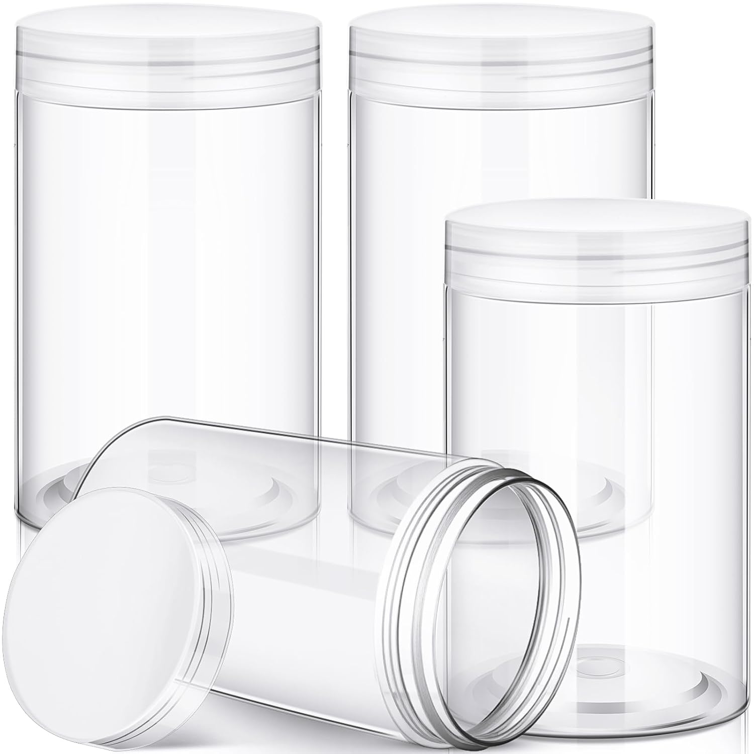 - What You Receive: there are 4 pieces plastic jars with clear screw-on lids; They are durable and refillable, measuring about 12 oz in capacity