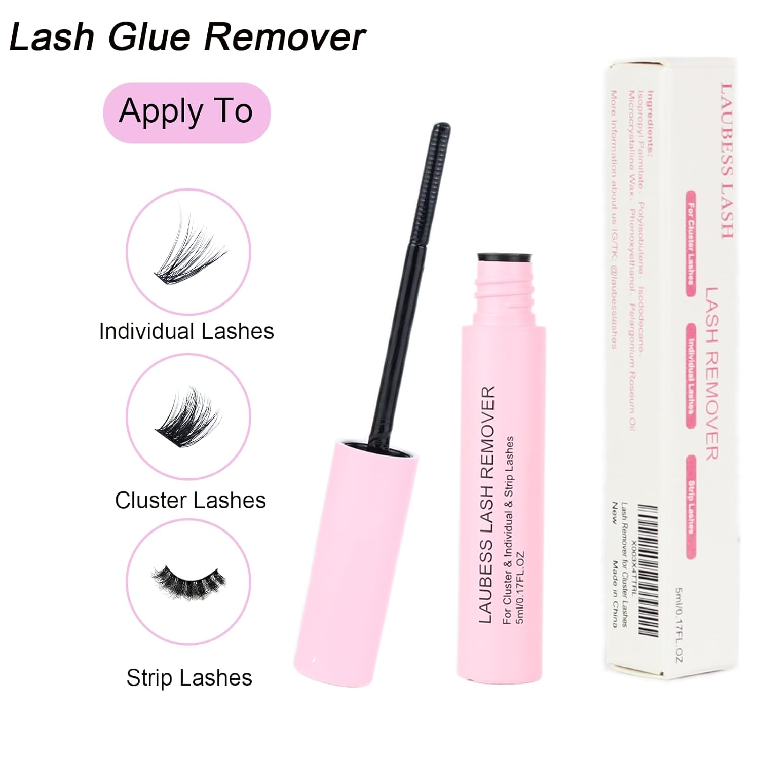 - Lash Remover: LAUBESS cluster lash remover provides high cleaning of individual lashes and adhesive. Oil-based formula will quickly dissolve lash glue and other oils and stains, leaving no trace behind, fast remove at several minutes.