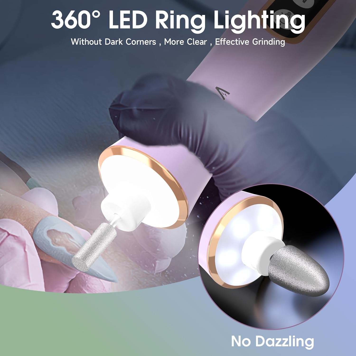 Professional Manicure Pedicure Kit with 360° LED Light&10 Speeds&Memory Mode with Case, Cordless Electric Nail Drill, Pedicure Tools for feet,Hand Foot Care Nail File for Thick Nail Toenail Cuticle