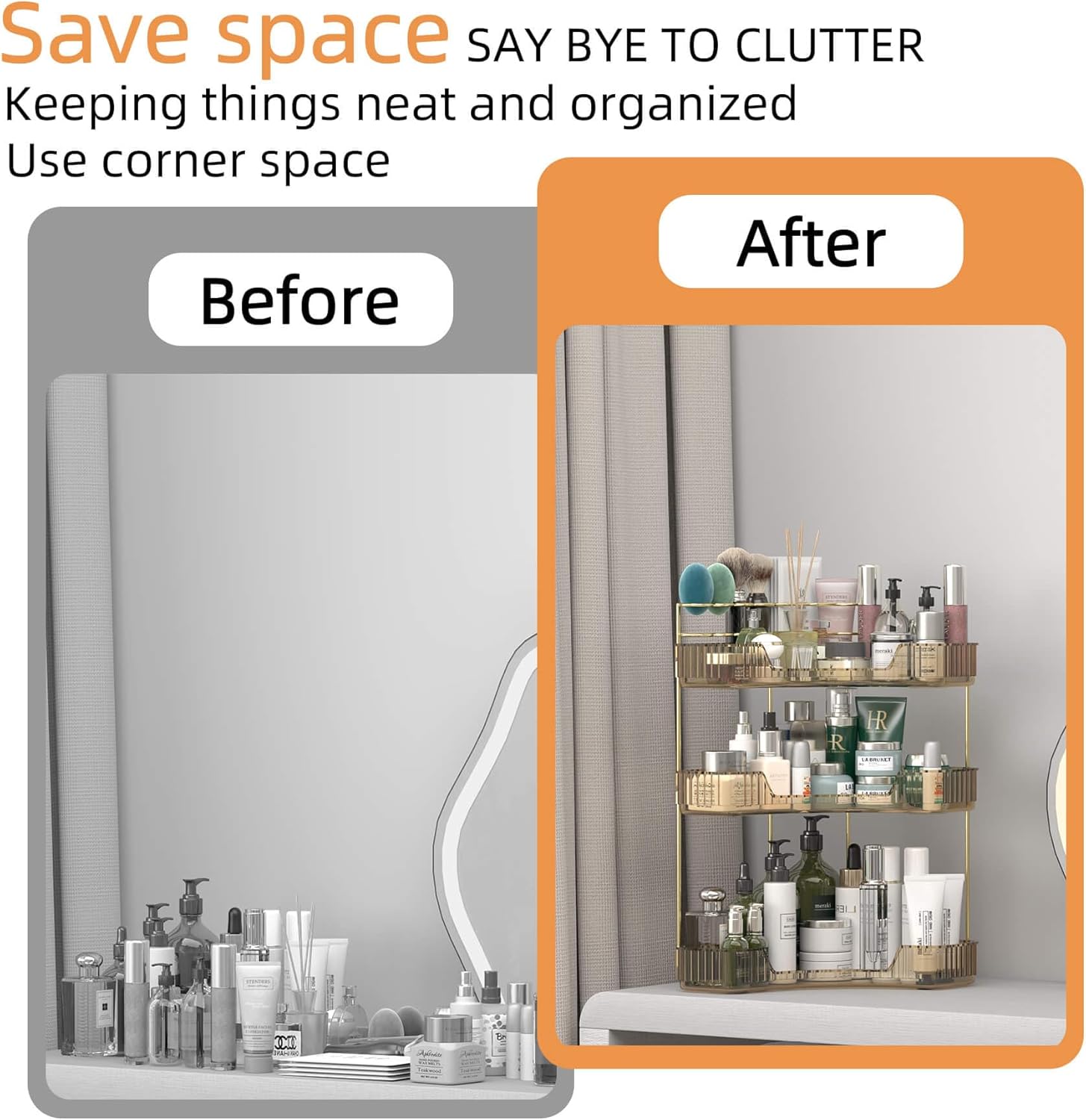 - 【Ideal Gift & Customer Service】Our makeup countertop organizer is ideal gift for many holidays: Christmas, New Year, Valentine's Day, Mother's Day, bridal showers, birthdays, etc. If you have any questions after receiving this item, please contact us.