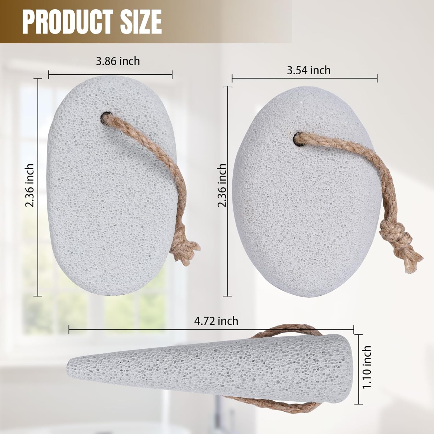 - 【3-in-1 Professional Pedicure Kit】Upgrade your foot care with 3 specialized shapes (Round, Oval, cone) designed for heels, arches, and toe gaps. Unlike single-stone , this pumice stone set tackles cracked heels, calluses, and rough skin from every angle for salon-level results at home.