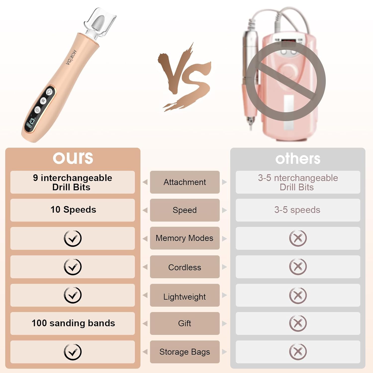 - What you will get: The Electric Nail Drill Kit comes with 9 interchangeable drill bits,100 sanding bands , Type-C charging cable to give your nails a salon-worthy look, this nail kits are the best gift for your nail lovers friends, It's so convenient and you can do a hand or foot care salon privately at home, and everything you need is included.