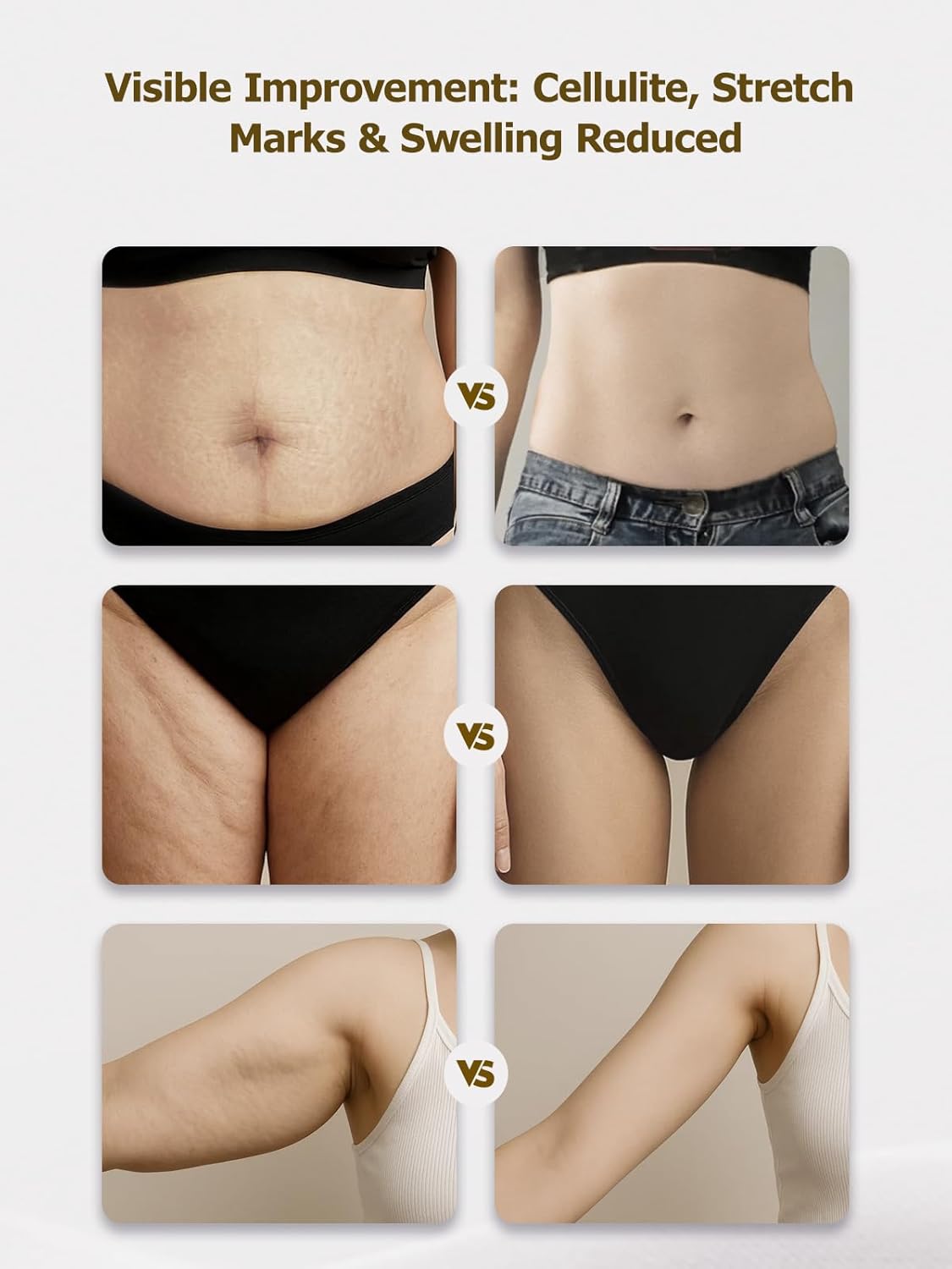 - Anti-Cellulite Technology – Smooth & Tighten Your Skin: This cellulite massager combines light, heat, vibration, and SoothingPulse to target stubborn cellulite & stretch marks. It boosts circulation, enhances collagen production, and improves skin elasticity, leaving you with firmer, more toned, and smoother skin. Ideal for legs, arms, stomach, thighs & waist.