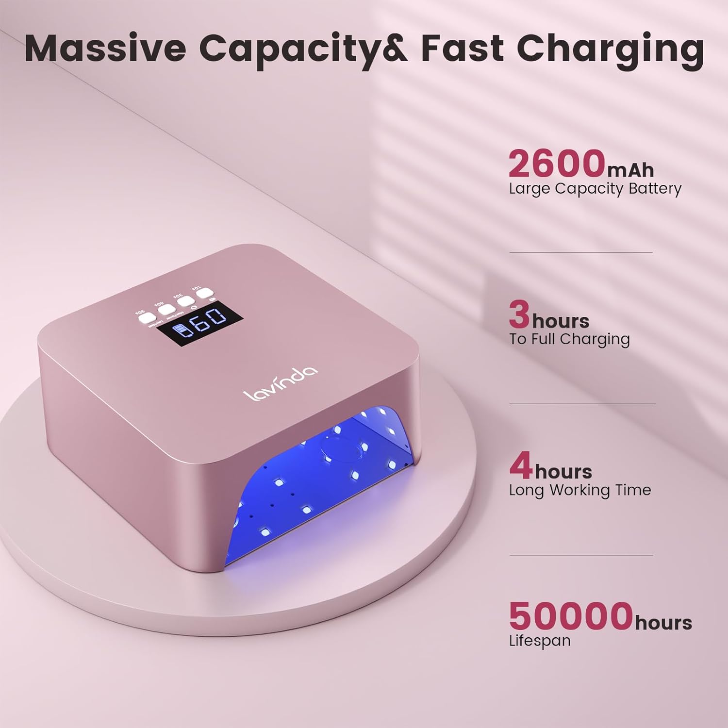 Lavinda 48W UV LED Nail Lamp, Rechargeable Cordless UV Light for Gel Nails LED Nail Dryer with Auto Sensor, 4 Timer Settings & LCD Display, Fast Curing Light All Gel Polish for Home Salon Use