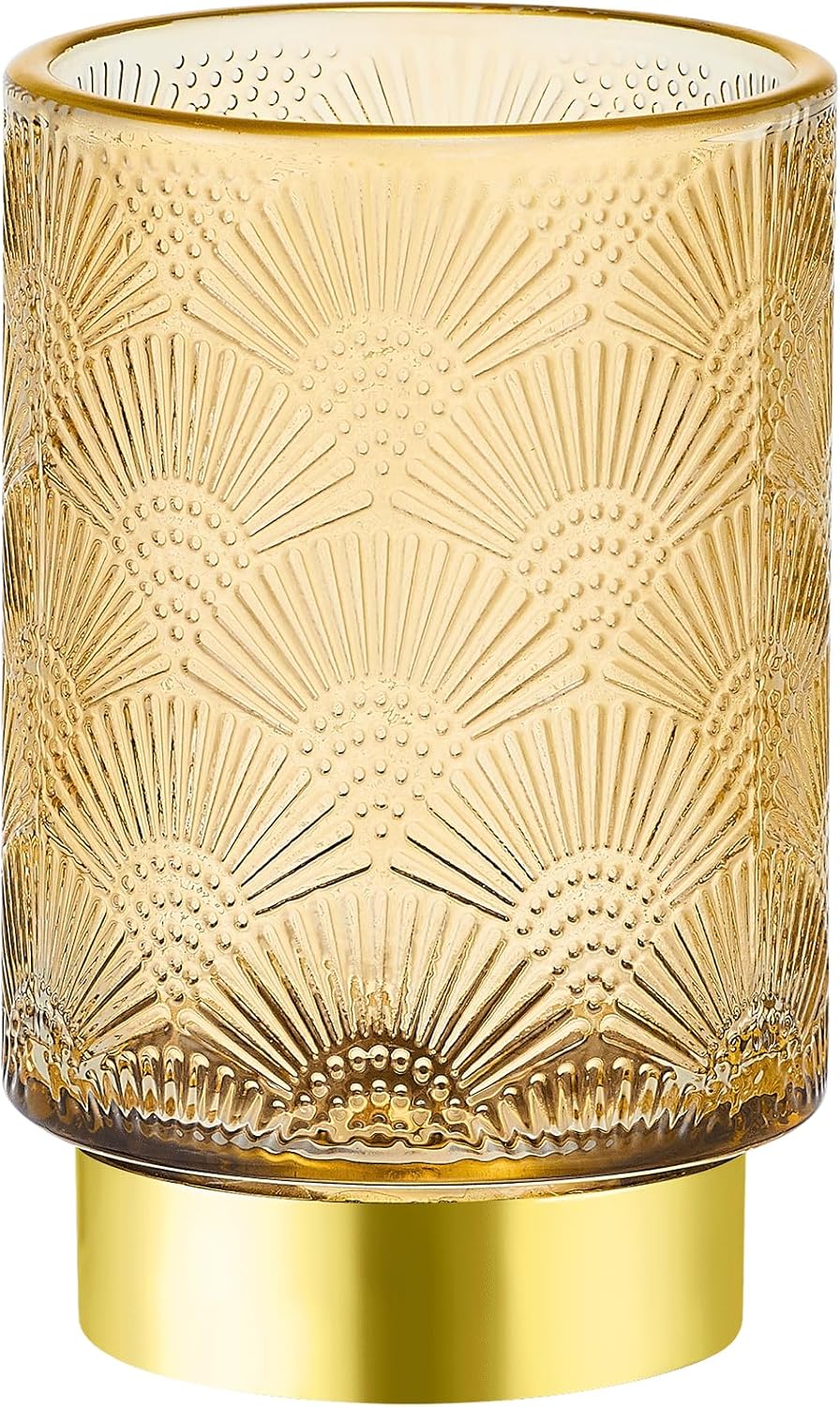 - Exquisite Design: Made of high-quality glass and a golden metal base.Its exquisite striped design on the glass body, complemented by the metal gold plating on the bottle mouth's top edge,sturdy and stylish.