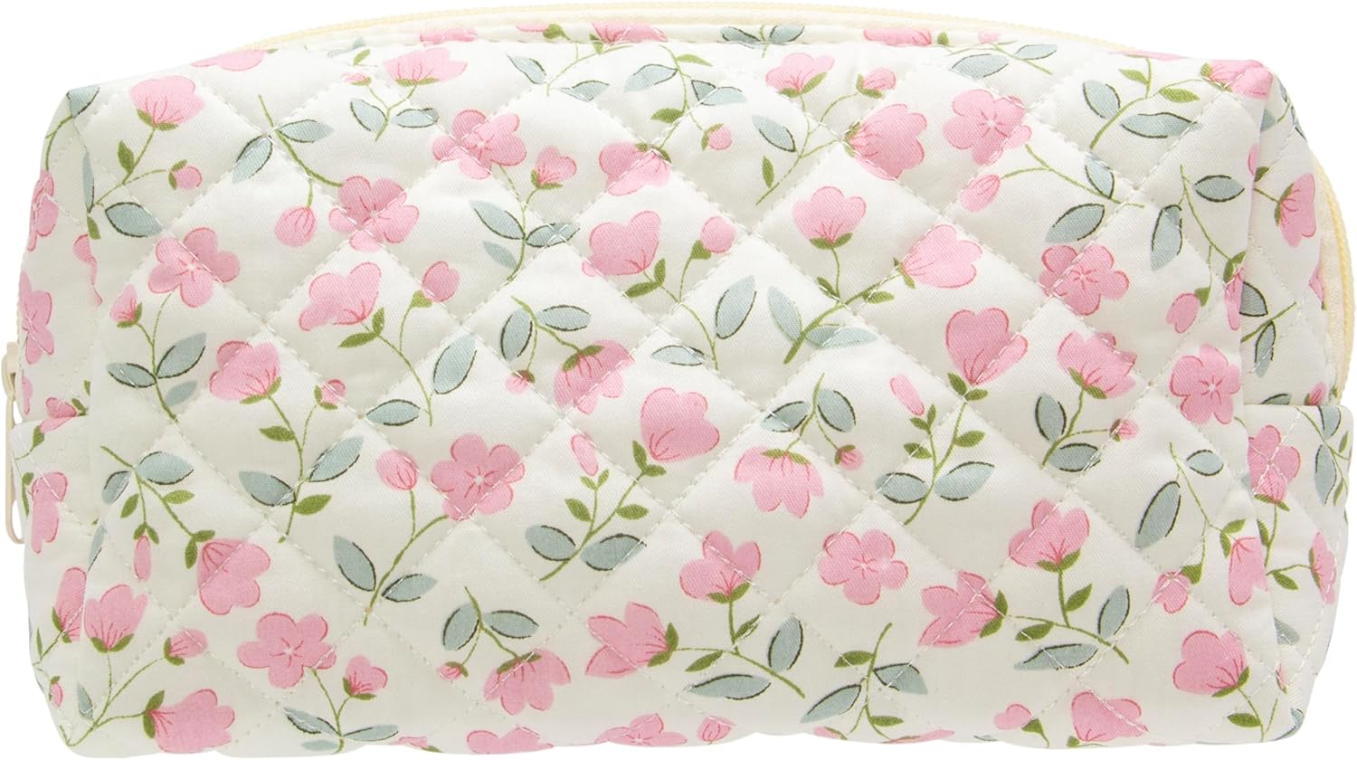 PAZIMIIK Vintage Quilted Makeup Bag Cosmetic Pouch for Brushes Pencils and Travel Make Up Accessories for Women and Girls Flower White