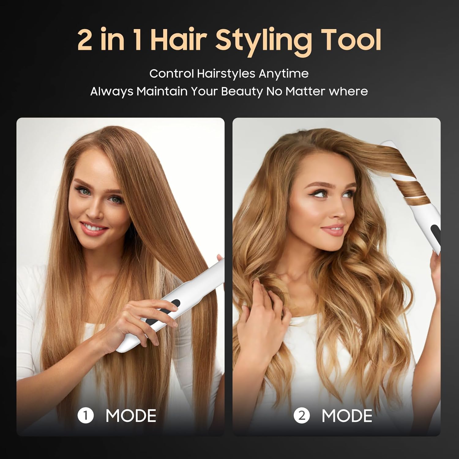 Cordless Hair Straightener and Curler 2 in 1, Titanium Flat Iron with Fast Heating, 4 Adjustable Temperature, Rechargeable Straightener for All Hair Types, Portable Styler for Travel (White)