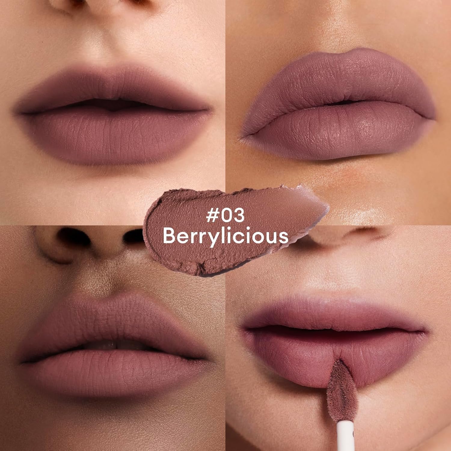 ITY Velvet Matte Finish Lip Stain-Mousse Textured Lip Clay, Red Shade, Conceals Lip Lines, Rich Pigment Lip Tint Lipsticks, 0.14 oz (4g) in Earthy, Berrylicious.