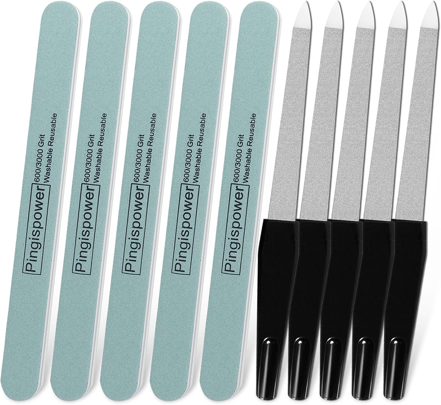 - DOUBLE-SIDED EFFICIENCY, PROFESSIONAL CHOICE:Pingispower Nail Files and Buffers Set features double-sided metal nail file and nail buffer block, meeting diverse grinding needs effortlessly. It's a professional choice among nail art tools, quickly shaping perfect nails.