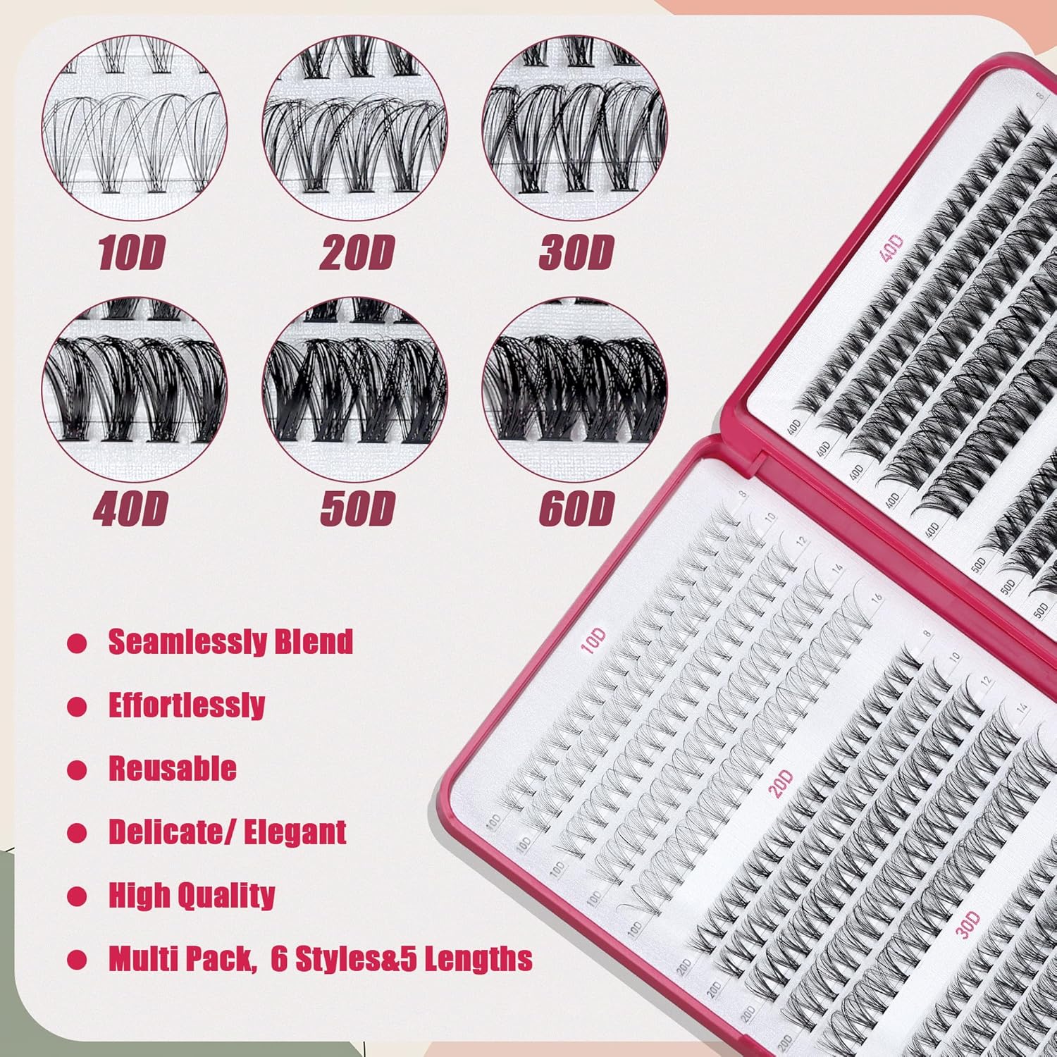 Lash Clusters 600PCS Lashes - Wispy Lash Clusters 10D 20D 30D+40D50D60D Individual Lashes Clusters D Curl Lash Extension 8-16MM Eyelash Clusters with Lash Bond and Seal