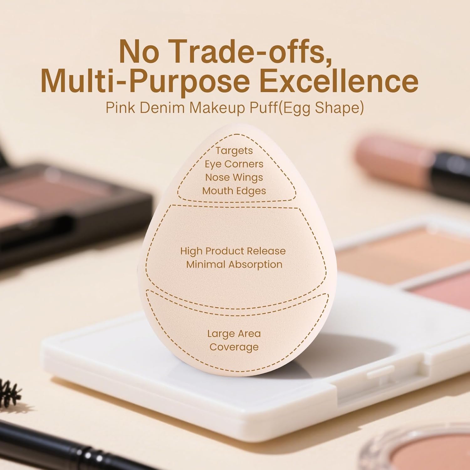 - 🌸【DUAL SHAPE, FLAWLESS FINISH】 Includes egg-shaped sponge (59×76×19mm) for quick full-face application + flat-edge sponge (59×65×18mm) for precise detailing – achieves airbrushed perfection in half the time