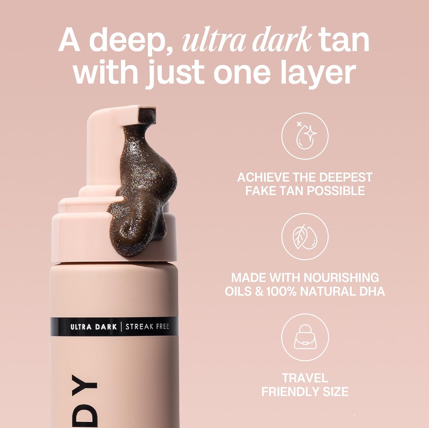 - ๐ฆ๐ฒ๐น๐ณ-๐ง๐ฎ๐ป๐ป๐ฒ๐ฟ ๐จ๐น๐๐ฟ๐ฎ ๐๐ฎ๐ฟ๐ธ, ๐ก๐ฎ๐๐๐ฟ๐ฎ๐น-๐๐ผ๐ผ๐ธ๐ถ๐ป๐ด ๐ง๐ฎ๐ป: Transform your skin with our deepest, most natural-looking Self Tan . This lightweight Ultra Dark mousse delivers a flawless bronzed glow with Fake Tan color technology that eliminates orange tones. Perfect for special events or year-round confidence, our tinted formula with Color Guide Technology ensures even application with no streaking.
