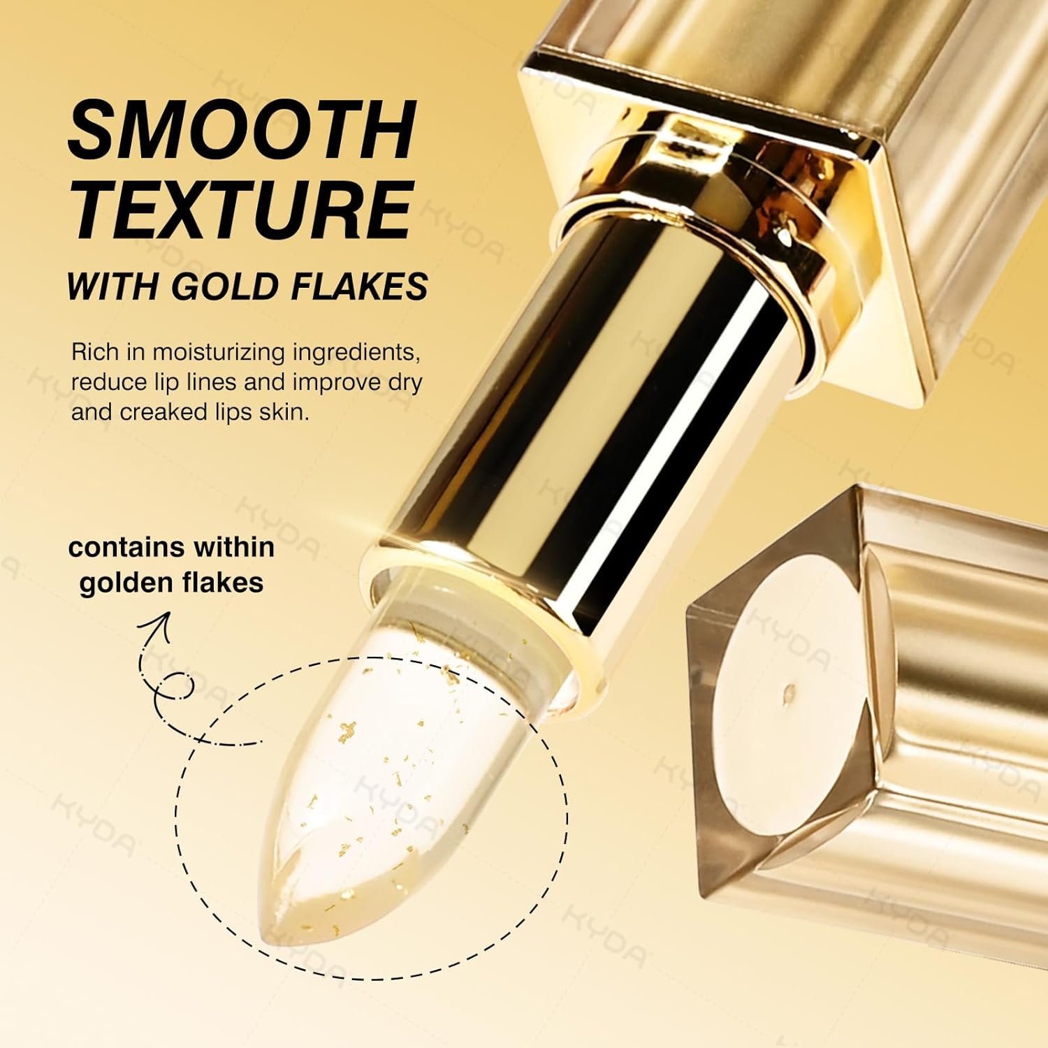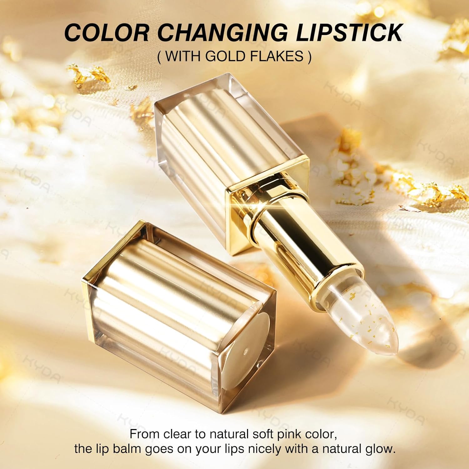 KYDA 2 Pcs Transferproof Color Changing Lipstick with Gold Flakes, Changes from Clear to Sheer Pink, Moisturizing Tinted Lip Balm, Deep Nourishment, PH Changing Lipstick, Glossy Shine Lip Stain