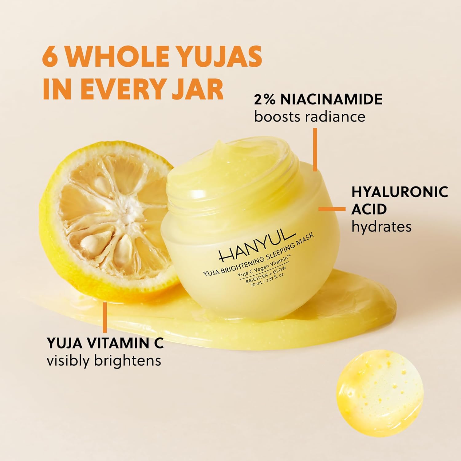 Hanyul Yuja Sleeping Mask | Korean Yuzu Night Cream, Vitamin C for Glow, Radiance, Brightening, Vegan Hydrating Overnight Moisturizer with Hyaluronic Acid, Niacinamide & Antioxidants 2.37 fl. oz.