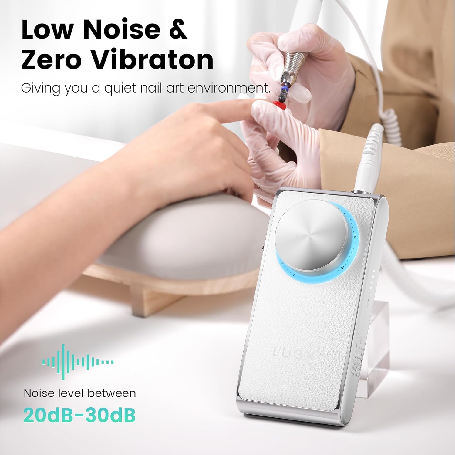 - 【Update 30,000RPM Coreless Motor】Equipped with an updated high-quality bearing coreless motor, enables this electric nail file works smoothly even at a high speed (0-30000 RPM) . Ultra-smooth operation with lower heat and lower noise. The best choice for beginners, professional nail technicians, and nail art enthusiasts alike.