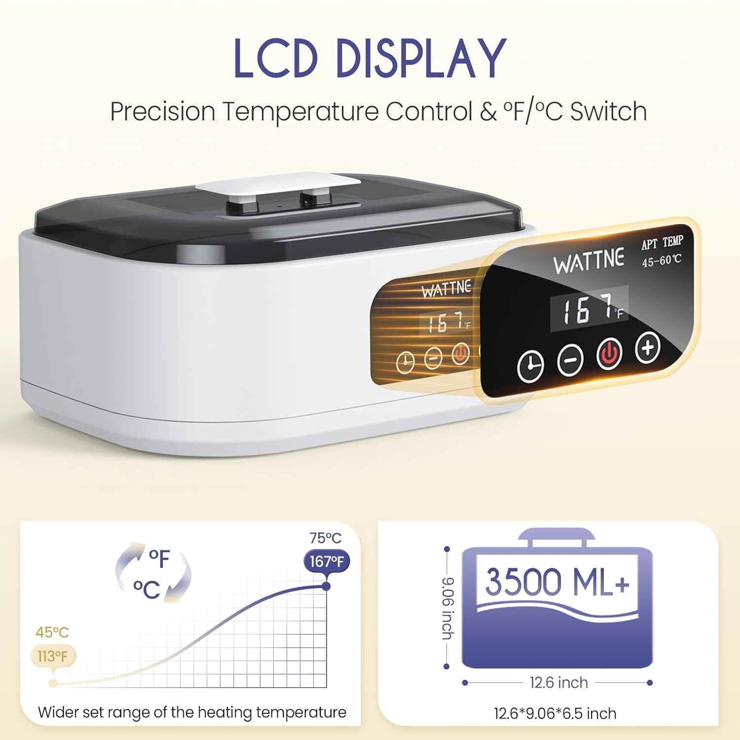 - 4 Smart Timer Settings + keep-warm mode: Our auto-shut off timer lets you set sessions for 0.5H/1H/1.5H/2H. The keep-warm function maintains your desired temperature, so wax stays melted without reheating, Perfect for multi-step treatments or salon use
