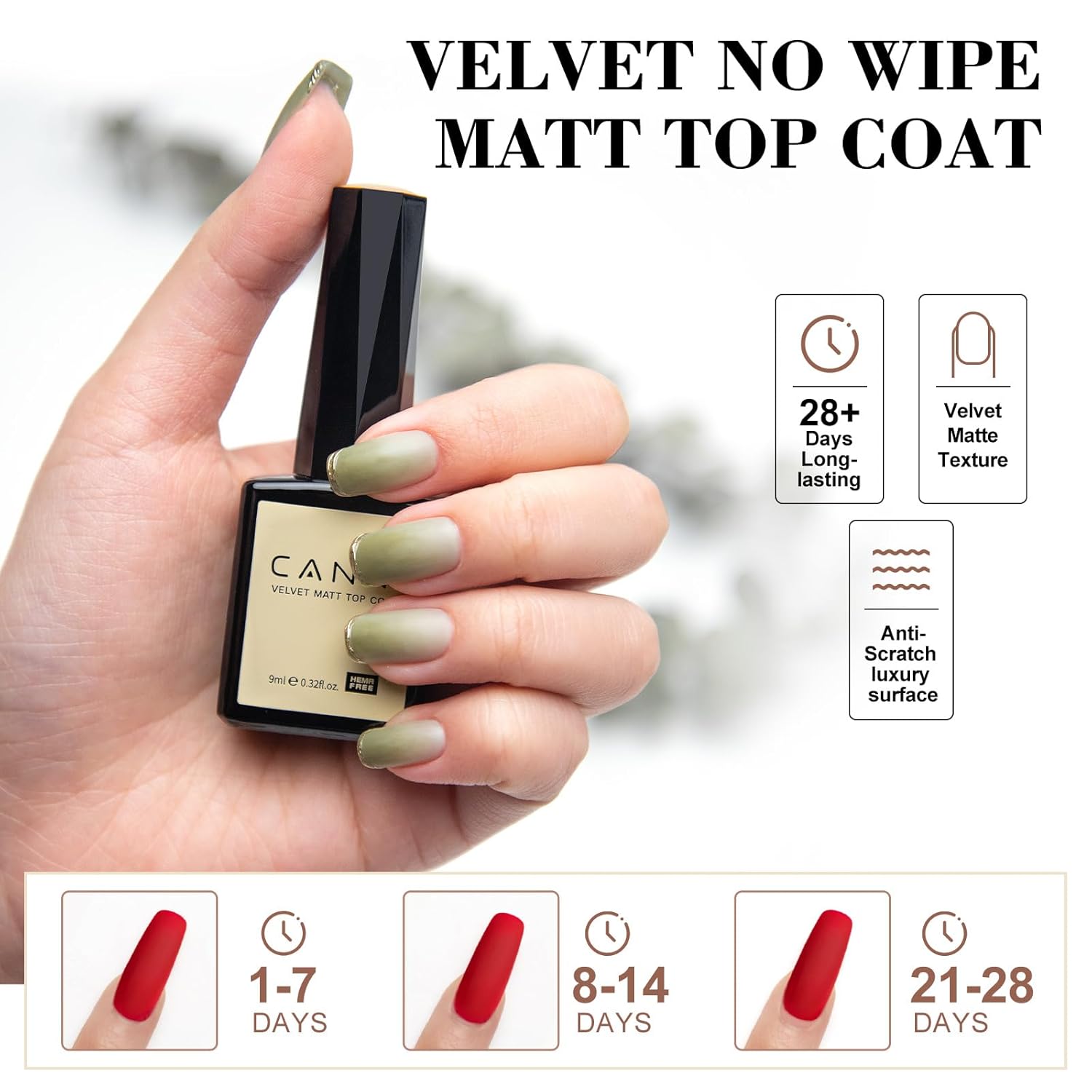 CANNI Matte Top Gel Nail Polish – 9ML Long-Lasting Soak Off UV LED Gel, Matte Finish for DIY Nail Art at Home or Salon