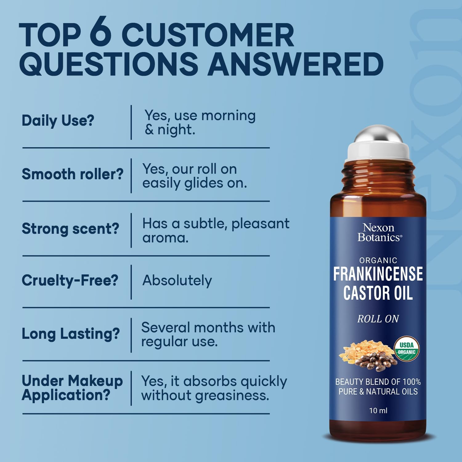 - Botanical Blend for Skin: Infused with USDA Organic castor and frankincense oils to hydrate dry skin, soften fine lines, and support a natural under-eye glow.