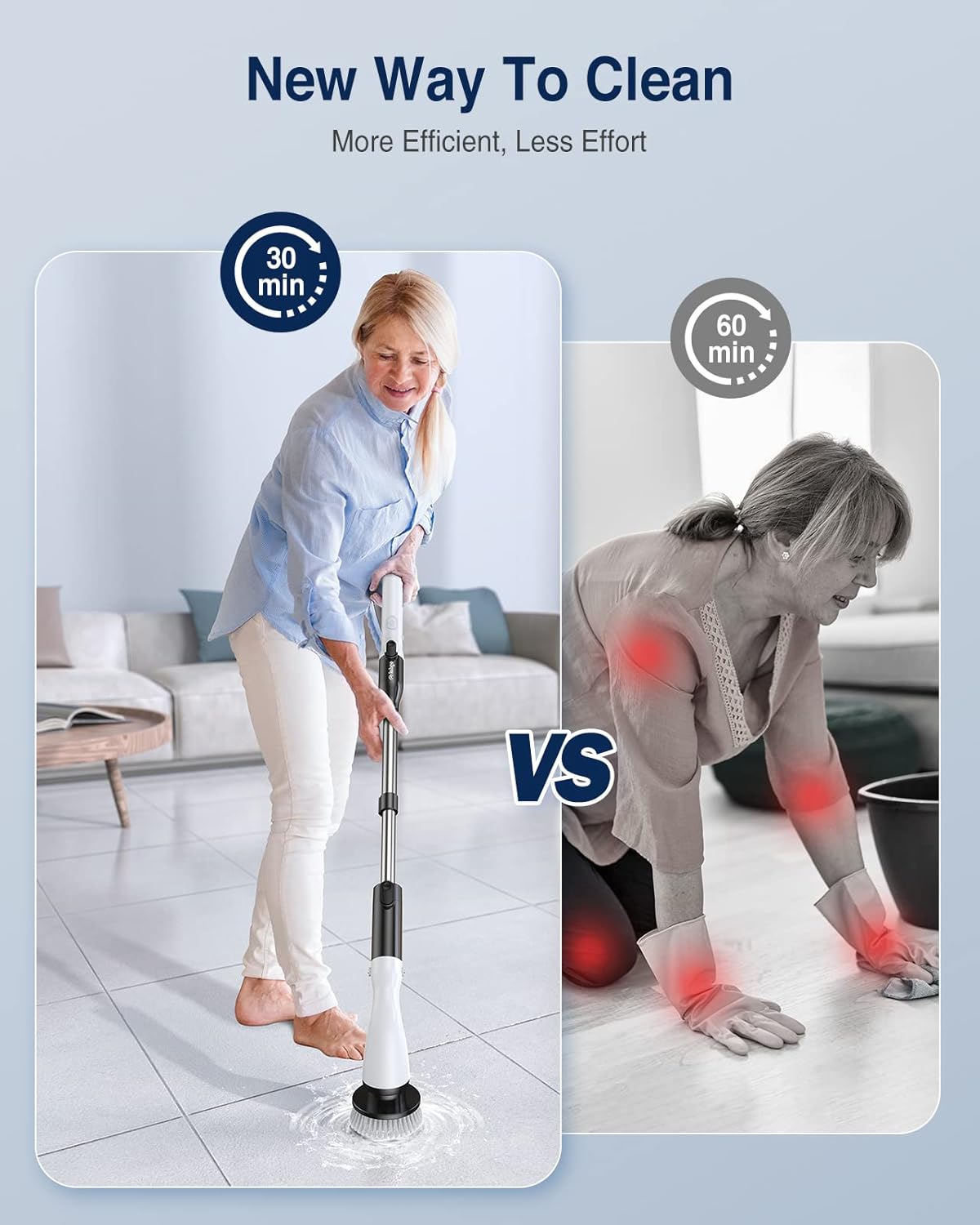 - Efficient Cleaning Companion: LABIGO Electric Spin Scrubber streamlines household cleaning, saving time and effort with its ergonomic design that eliminates the need for bending or kneeling. For tough stains, pre-soak in detergent for 5 mins before use