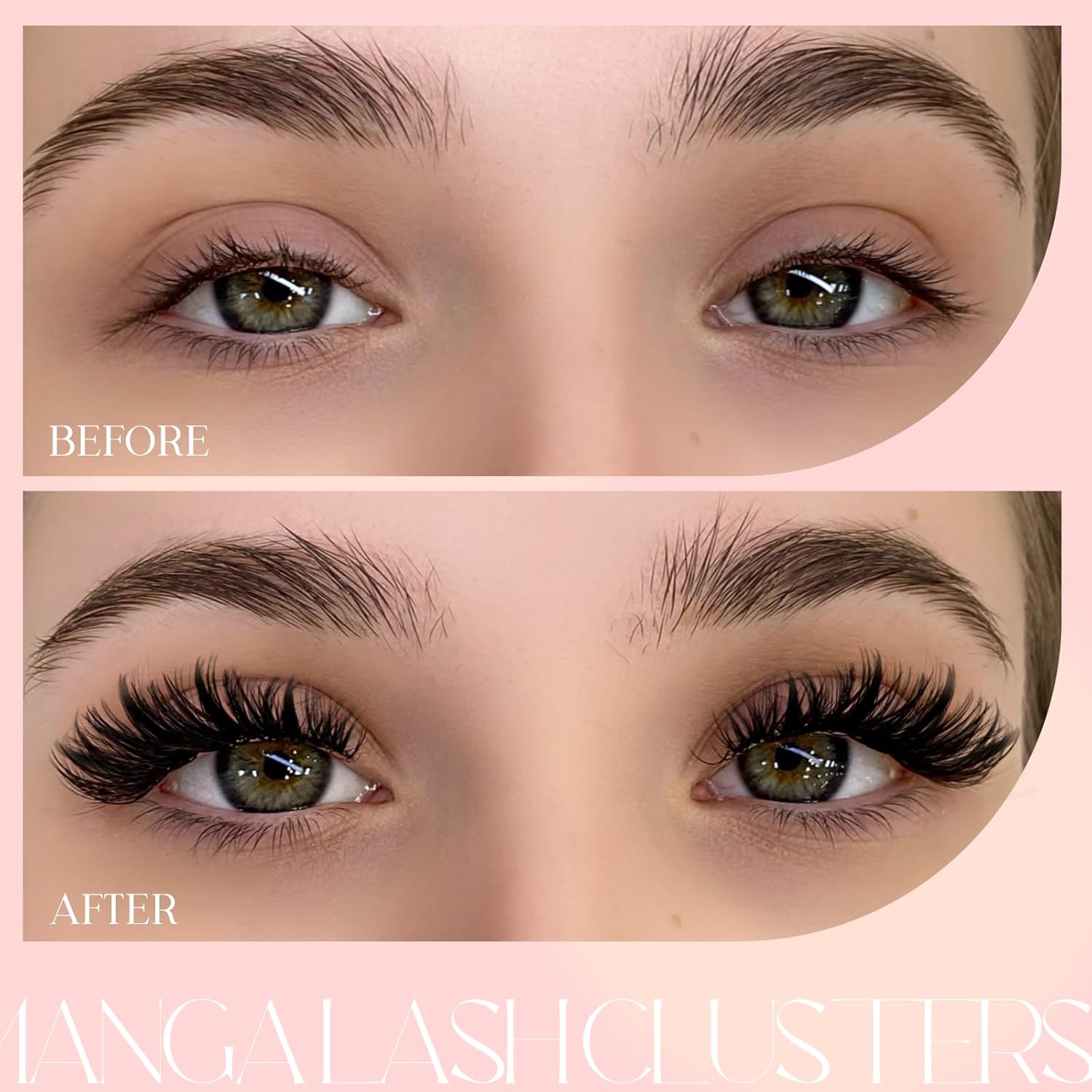 - Salon-level eyelash extension effect: Our lash cluster extension series is characterized by handcrafting and made from improved high-quality fibers. These clusters lash are lightweight and durable, easy to apply and remove, and can be reused with proper care. Suitable for professional eyelash artists and DIY enthusiasts, save time and money to enjoy a salon-like professional cluster eyelash extensions effect.