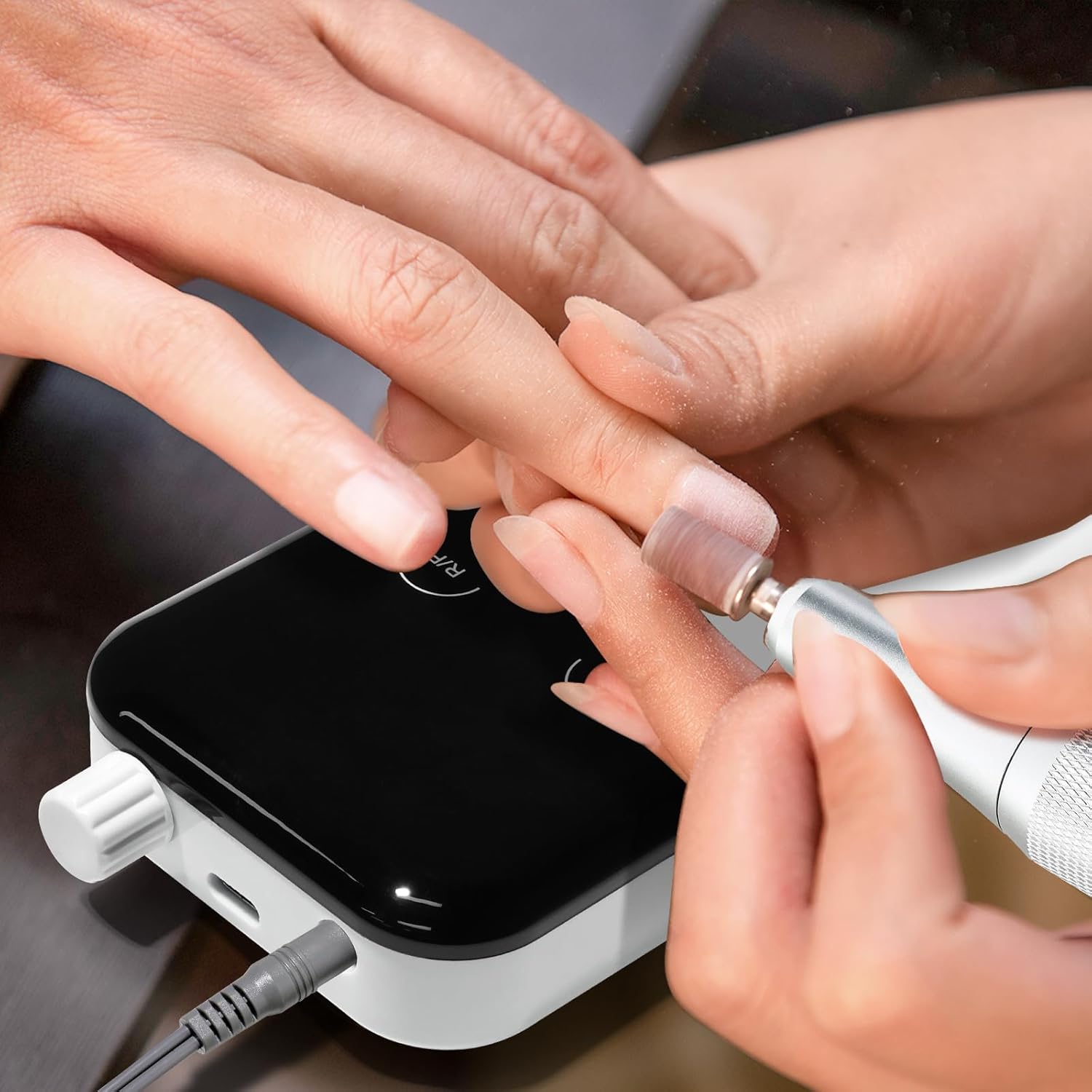 - 【Multifunctional Nail Drill Kit】This acrylic nail drill kit included an electric nail drill( with base), 50pcs sanding bands, 14 pcs metal nail drill bits(6 metal nail drill bits,5 pcs polishing drill bits, 3 ceramics nail drill bits), 5pcs nail file, and 1pc nail brush. Perfect for grinding, sharpening, carving, engraving, routing, sanding, cutting, polishing and drilling. This file nail drill is suitable for natural nails, gel nail polish, acrylic gel, thick nails, cuticle, dead skin. It is a nail drill set that meets all your nail beauty need.