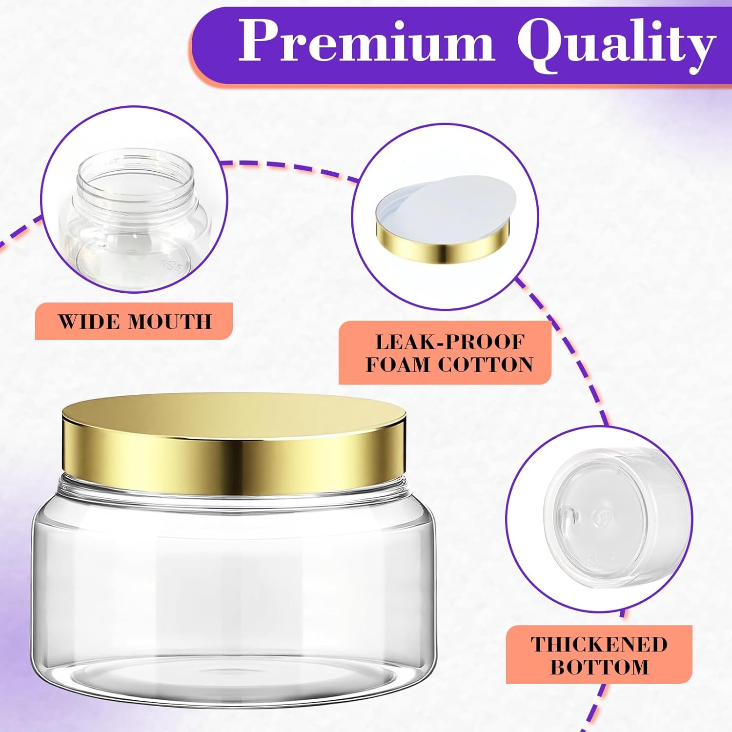 - 【GOOD MATERIAL】- Our 5 ounce cosmetic jars are made of high grade transparent plastic, resistant to breaking. These plastic cosmetic containers with lids have complete sealed design, you do not need to worry about leakage, especially when you carry them in your bags.