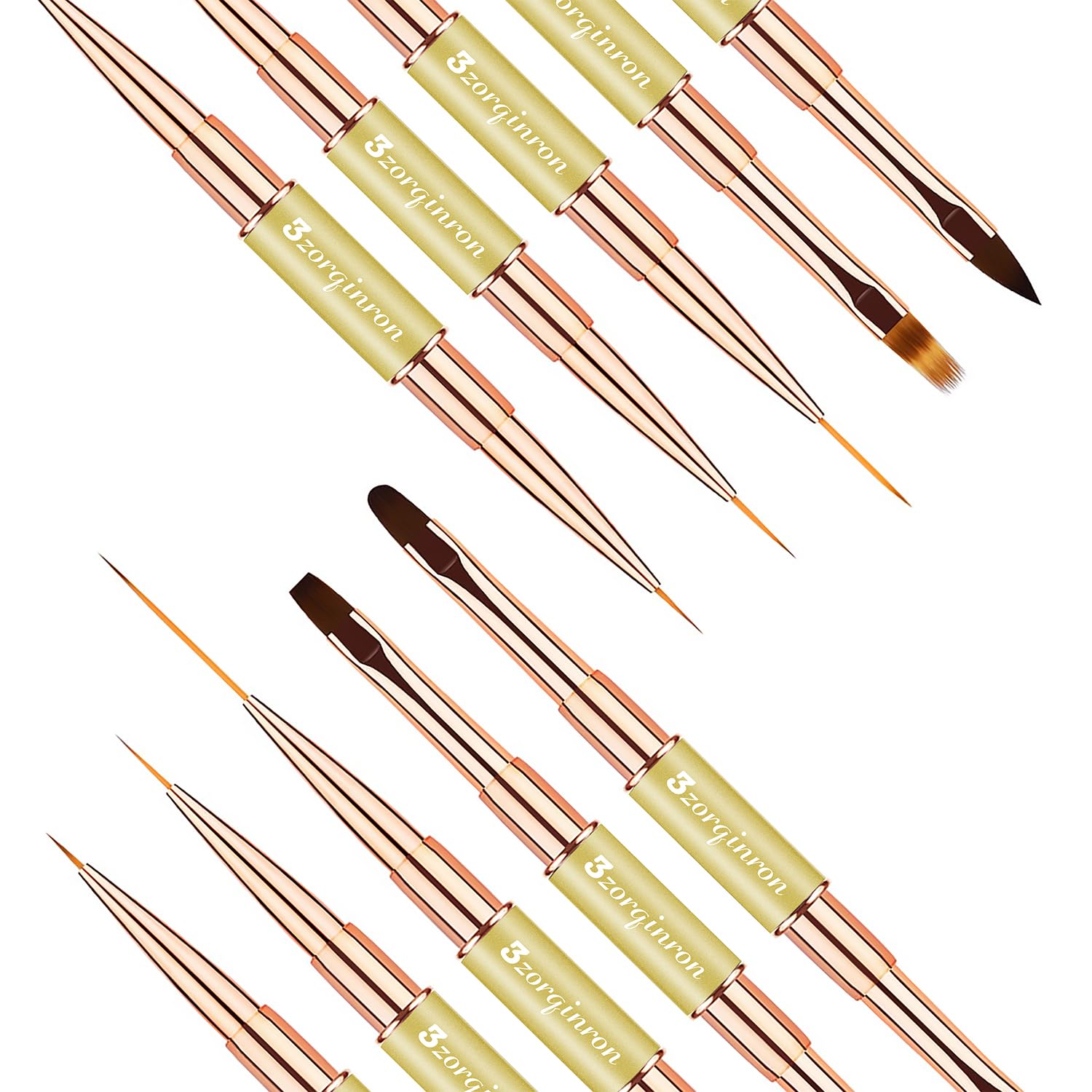 - Versatile Design β Our brushes feature double-heads with 10 different brush heads to choose from, including liner and detail brushes, flat and ombre brushes, a Filbert brush, and a 3D brush, giving you the freedom to create any design you like. Whether you're creating delicate floral patterns or bold abstract designs, these brushes will deliver outstanding results.