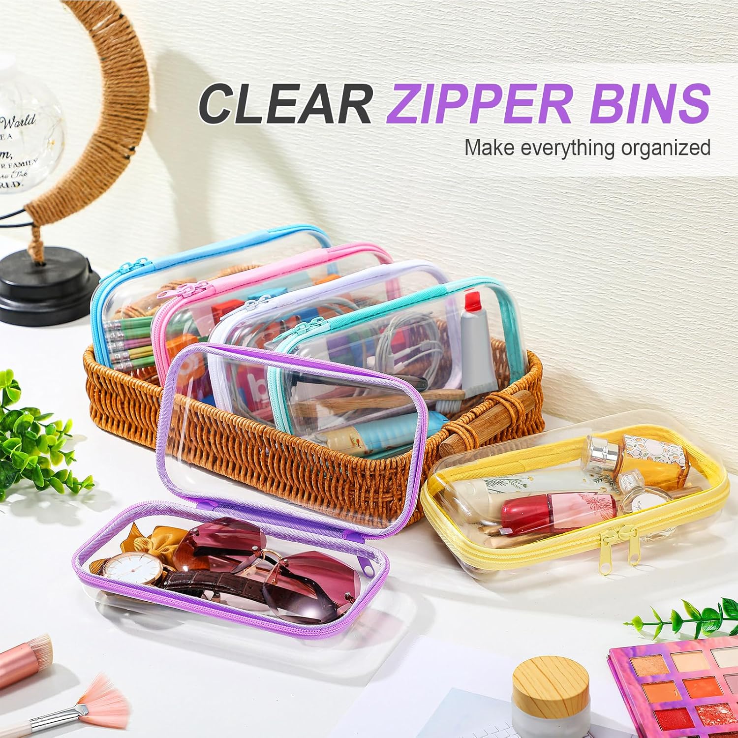 Sanwuta 6 Pcs Clear Hard Zipper Case Pencil Pouches Hard Plastic Zipper Pouches Makeup Bag Transparent Cases for Snacks Plastic Storage Organizer Box for Travel(Colorful,7.48 x 3.94 x 2 Inch)
