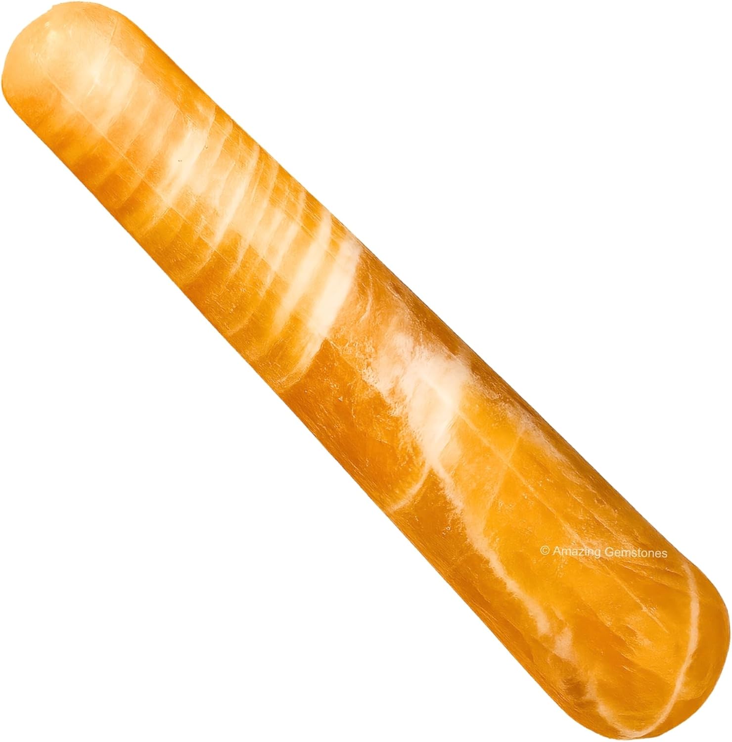 - Natural Healing Crystal Wand - This yellow calcite massage stick is infused with the natural energy of crystals to enhance your massage experience and are hand crafted, quality checked, earthly mined, organic and authentic.