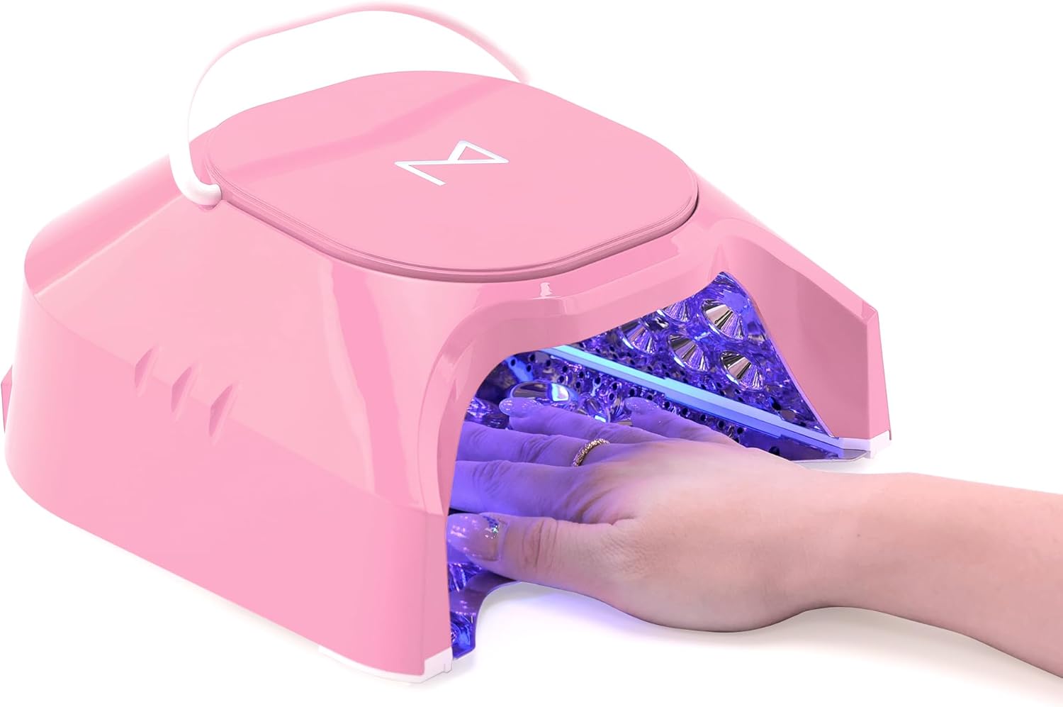 M - GlowPro Professional Hybrid 86W Wireless Rechargeable UV LED Nail Curing Lamp Cordless Nail Dryer for Gel Nails, Manicure, Pedicure (Pink)
