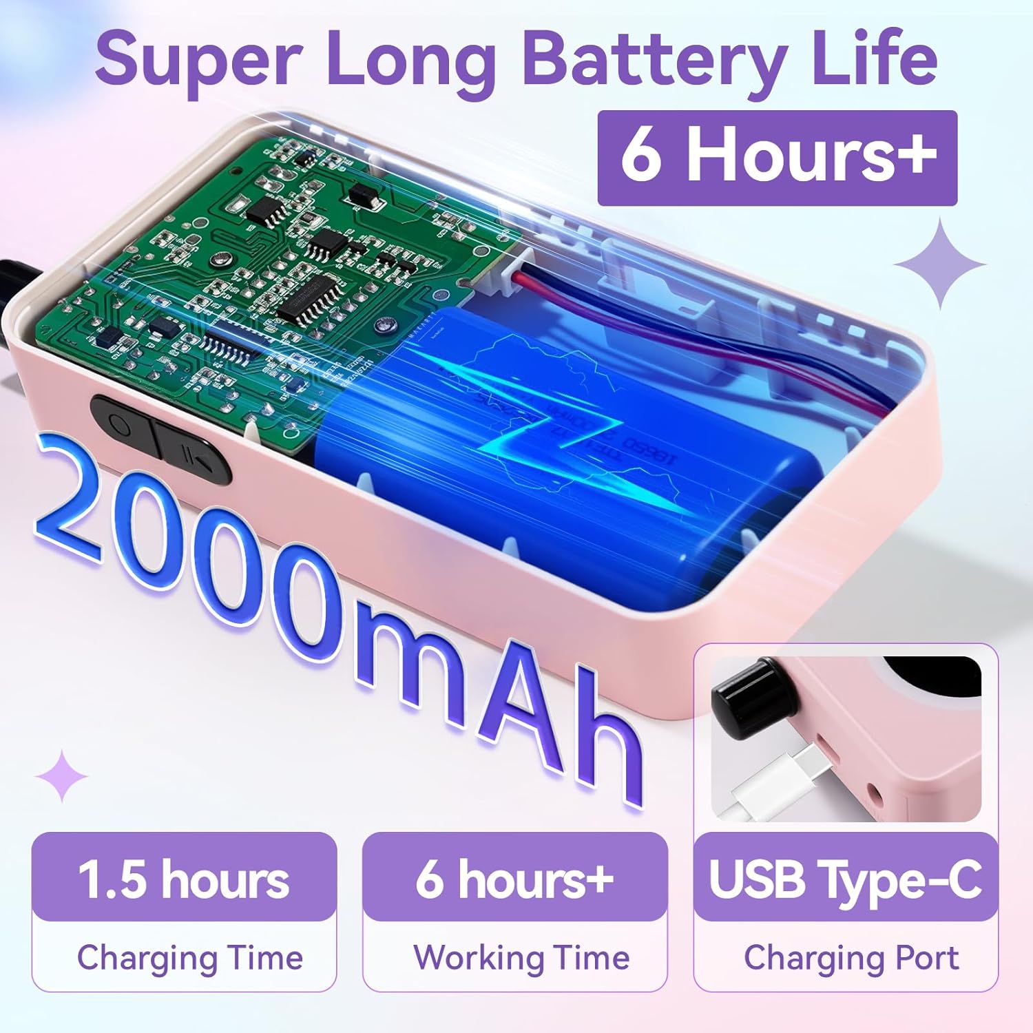 - 6H Battery Life & Fast Charging: With a rechargeable 2000mAh battery, this nail drill professional runs up to 6 hours on a full charge. It recharges in just 2.5 hours via USB-C—great for back-to-back clients or home DIY sessions