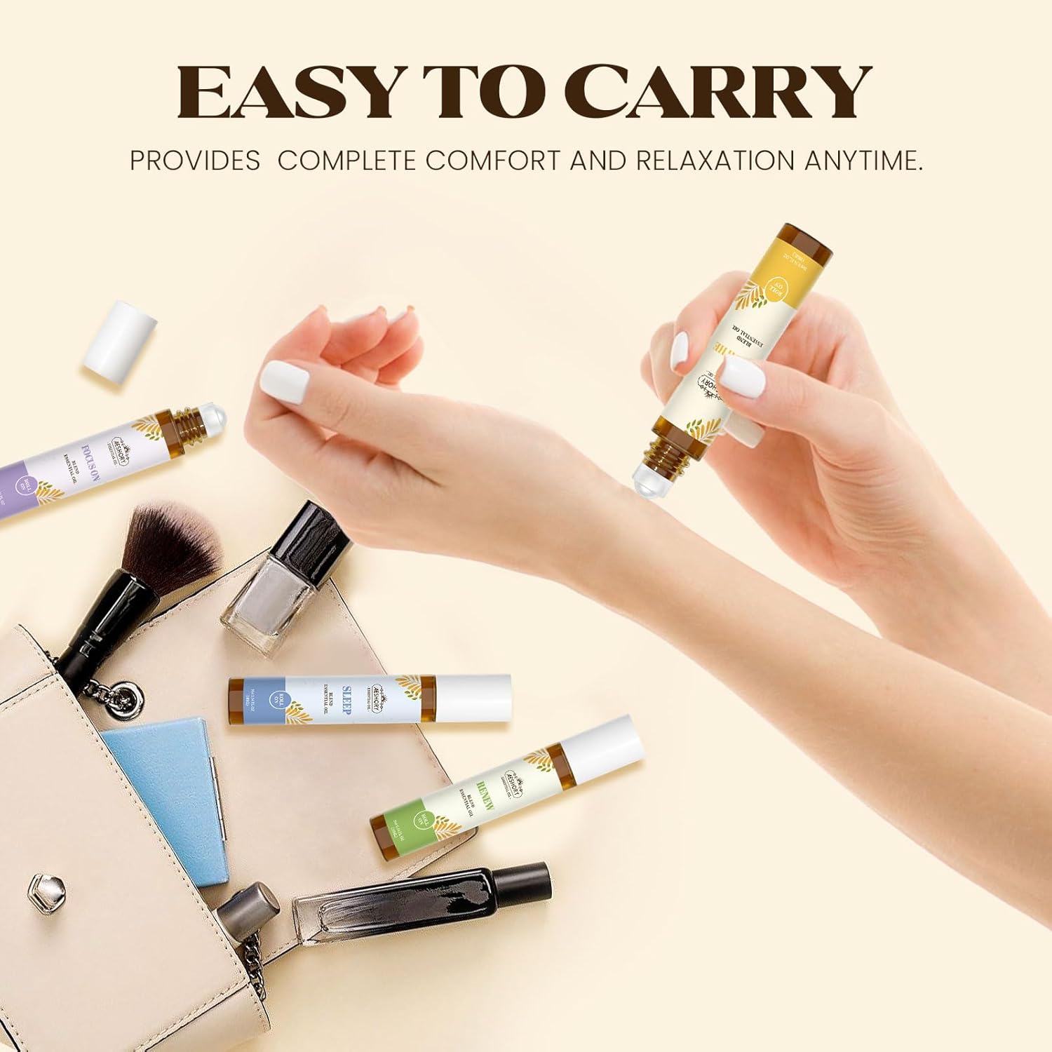 - Easy Rollerball Application : Effortlessly apply your favorite essential oil perfume with the convenient glass rollerball bottles. No spills, no mess! The compact 10ml size is perfect for your purse, gym bag, desk, or suitcase β ideal travel essentials for women and men. Get instant aromatherapy relief on-the-go, whether seeking focus at work or calm during travel.