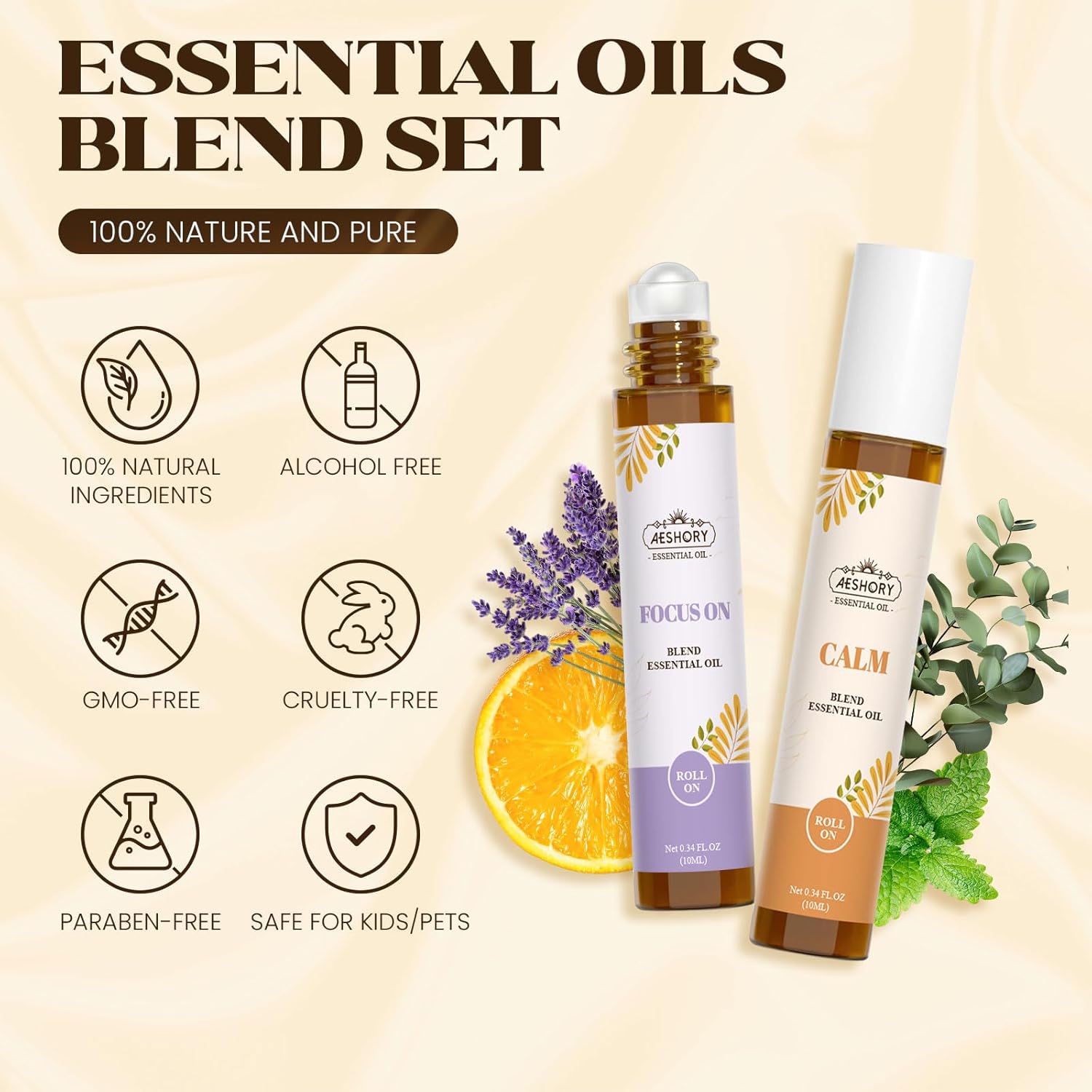 Essential Oils Roll On Set(Calm, Relax, Breathe, Focus on, Sleep, Renew), Natural Aromatherapy Oil Blend Kit with Roller Ball for Massage, Body Skin Care, Home, Relaxation Gift for Women & Men