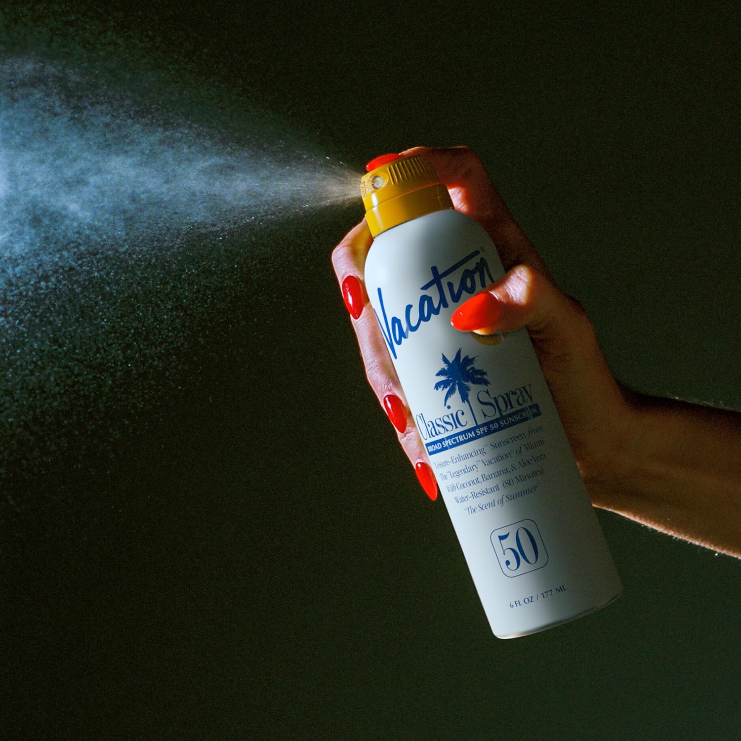 - 6 x TRAVEL SUNSCREEN: The same sun protection of Vacation Sunscreen's Classic Spray SPF 50 now available in a 1.7oz travel size sunscreen spray. Complete with six deluxe mini sprays, this water resistant (80 minutes) broad spectrum suntan lotion is octinoxate free, PEG & paraben free, cruelty free, and vegan.
