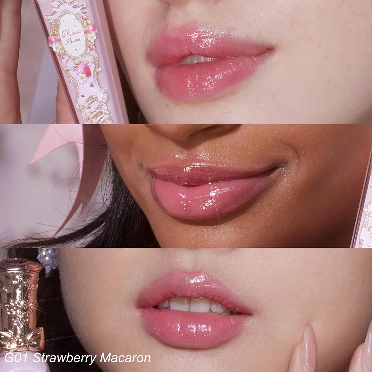 - Moisturizing Tinted Plumping Lip Gloss:Experience beautifully fuller lips with Flower Knows Violet Strawberry Rococo Glowy Lip Gloss.This luscious,non-sticky formula offers a transparent, jelly-like finish that enhances your natural beauty