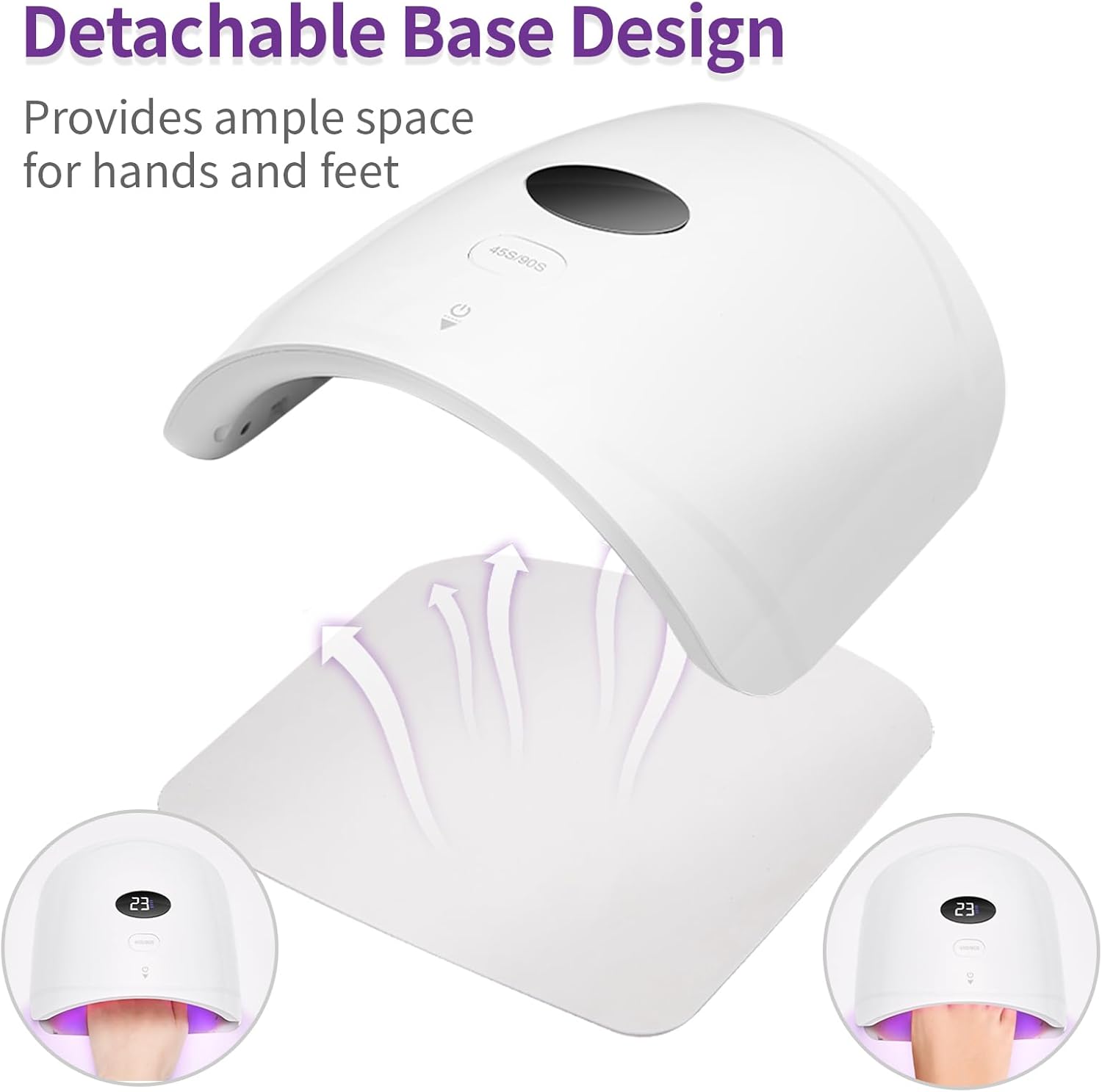 - Pro-Grade Design: Spacious chamber fits full-hand/feet, and the detachable base ensures easy cleaning. Lightweight yet durable, this professional uv nail lamp is perfect for beginners and experts alike.