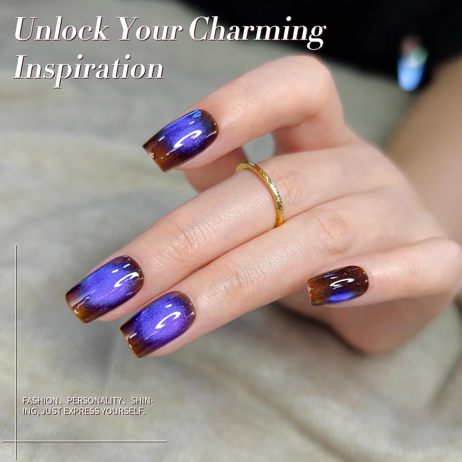 - PACKAGE CONTENTS: 1 bottle 15ml brown blue cat magnetic eye gel nail polish, compared with traditional gel polish, our magnetic gel nail polish has a higher gloss and silky effect, just like ceramic gloss, making your fingertips bloom with attractive charm. This Retro cat magnetic eye gel nail polish will appear differently in different angles and light.