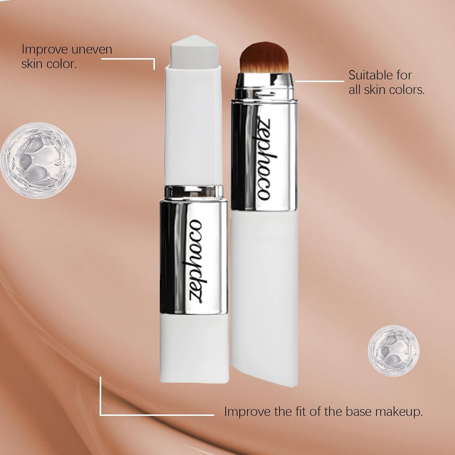 - COLOR-CHANGING STICK FOUNDATION: Meet your new beauty essential — theZEPHOCO! This innovative color- changing makeup stick starts as a soft white balm and transforms into a silky, tinted cream that blends seamlessly into your skin. With each stroke of the built-in brush, collagen capsules break open to trigger the color change.