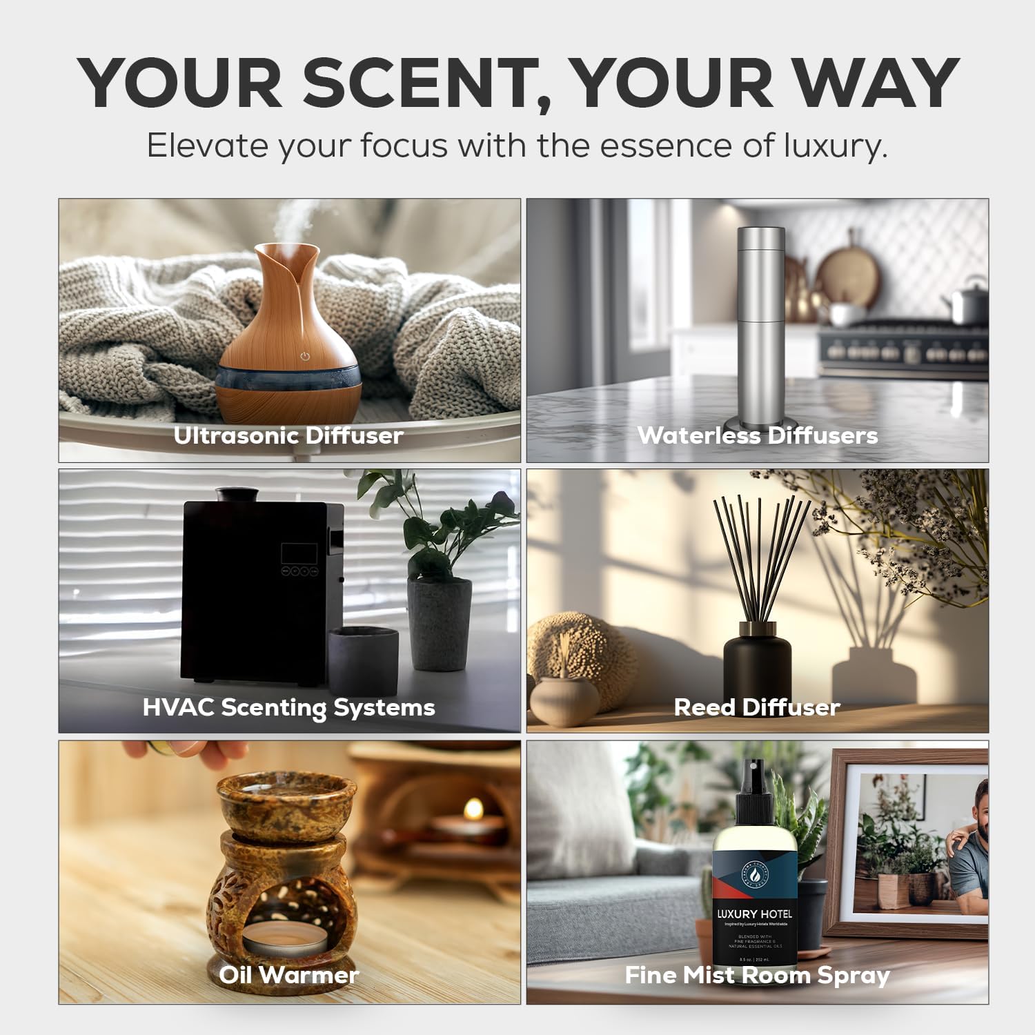 - Long-Lasting & High Quality – Made with premium ingredients and no fillers, this Luxury Hotel inspired fragrance oil offers a high concentration for long-lasting home scent—perfect for daily use.